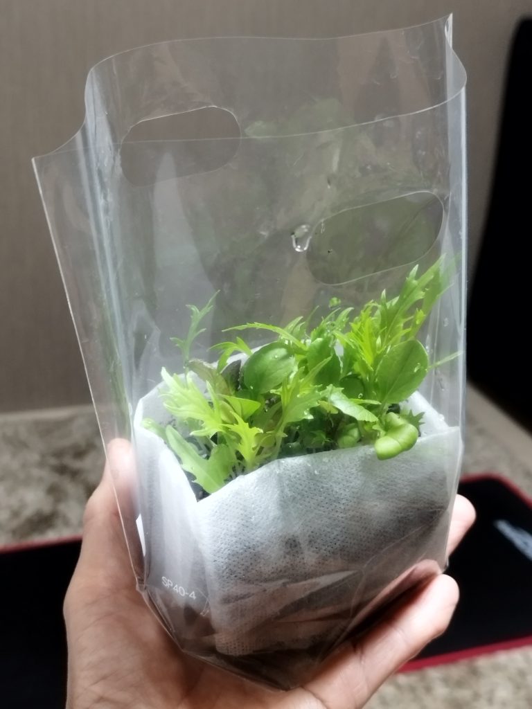 「活き野菜プロジェクト」では、マルシェで活き野菜だけでなく、不織布ポットと種のセットも一緒に販売していく予定です。自分でも育ててみたいという方は、ぜひ試してみてください。
