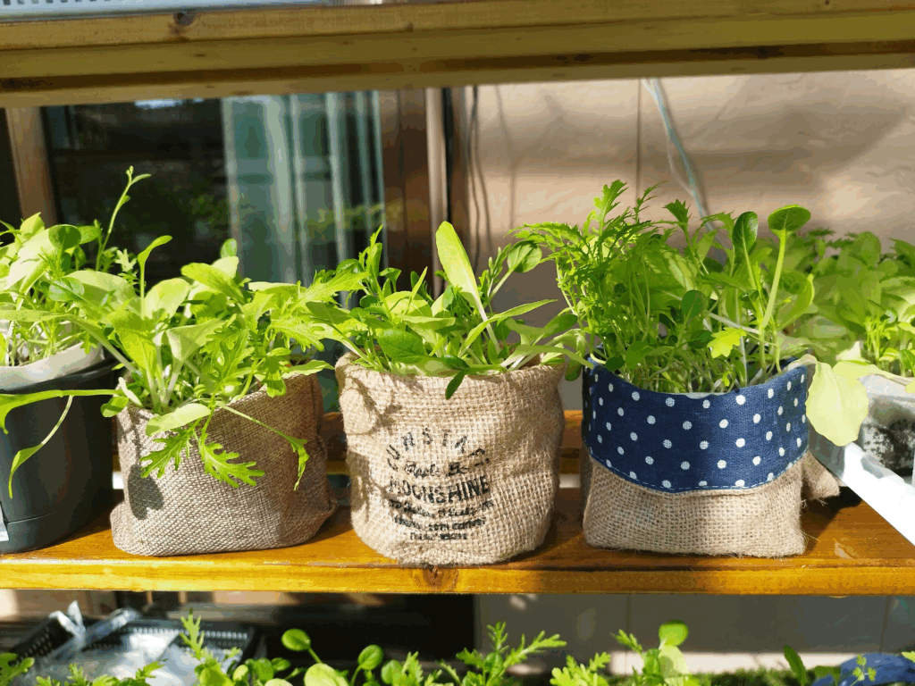 活き野菜は、不織布ポットのまま育ててもいいですが、「どんな鉢カバーと組み合わせてお洒落に飾るか」を考えるのも、楽しみのひとつ。無印良品やIKEA、そしてダイソーに行くと鉢カバーにぴったりのものがたくさん見つかります。